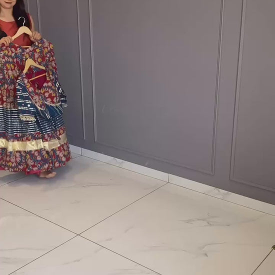 Blue and Marron Cotton Kalamkari Chaniya Choli