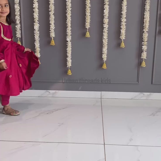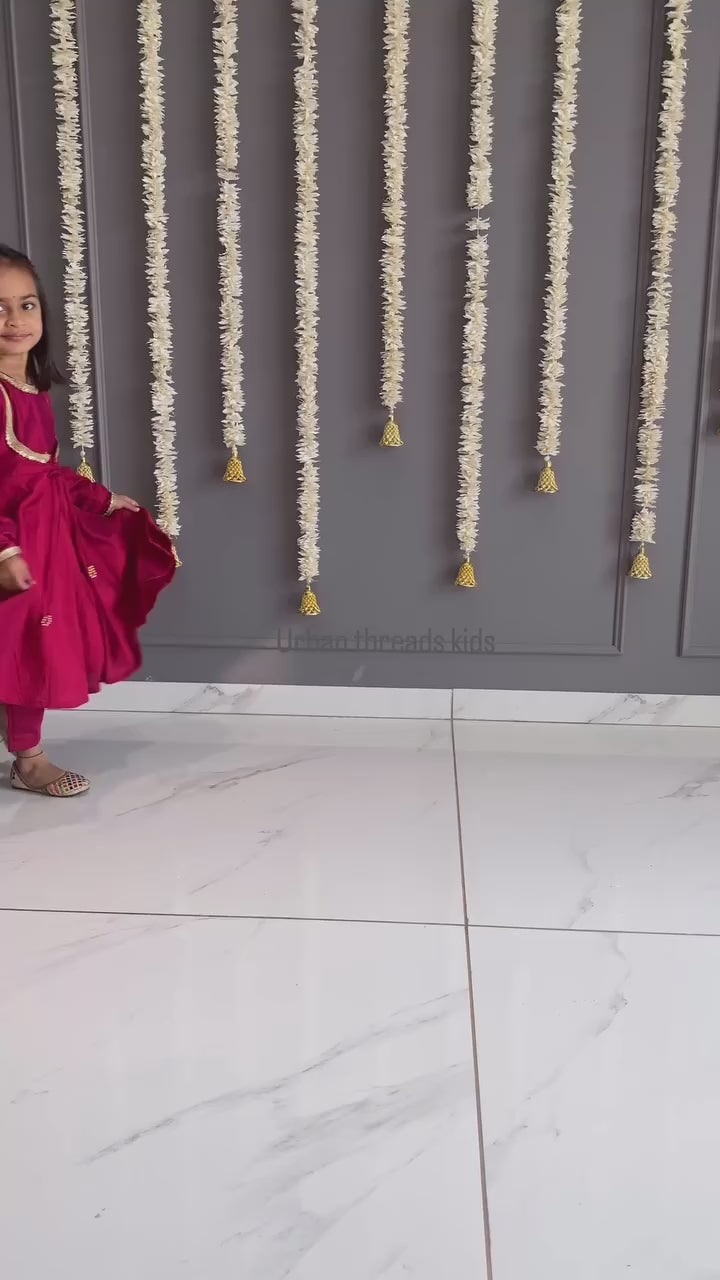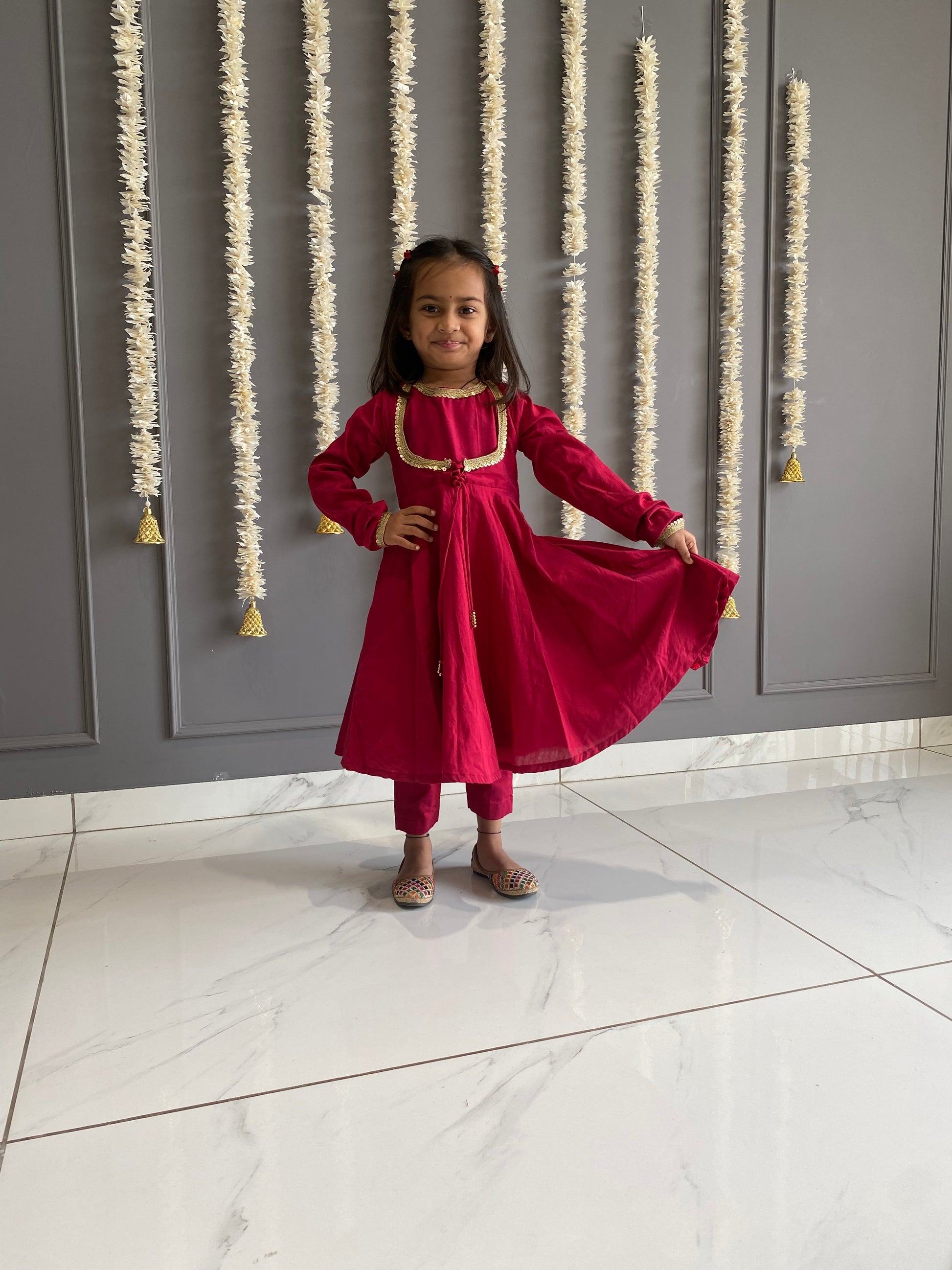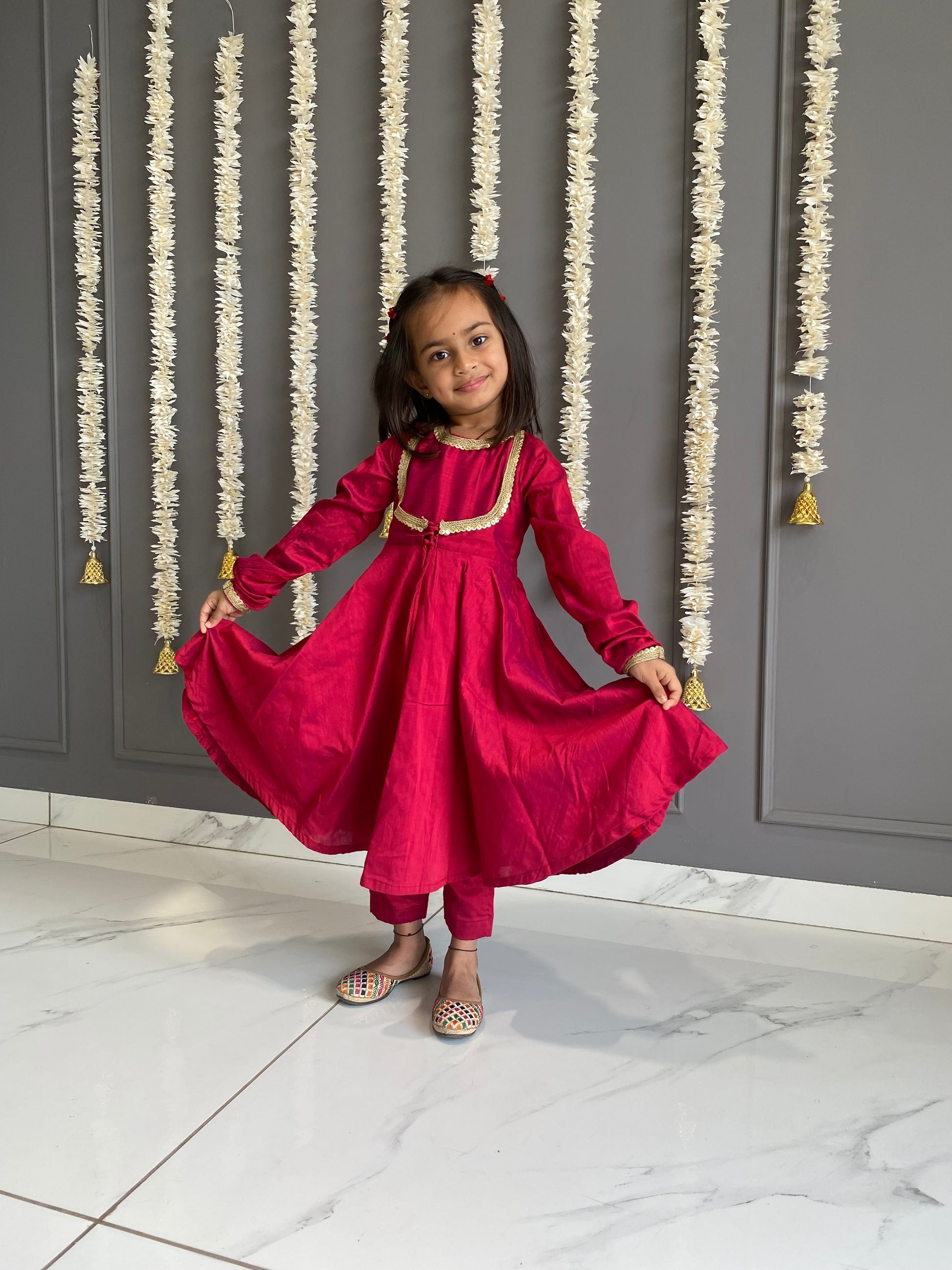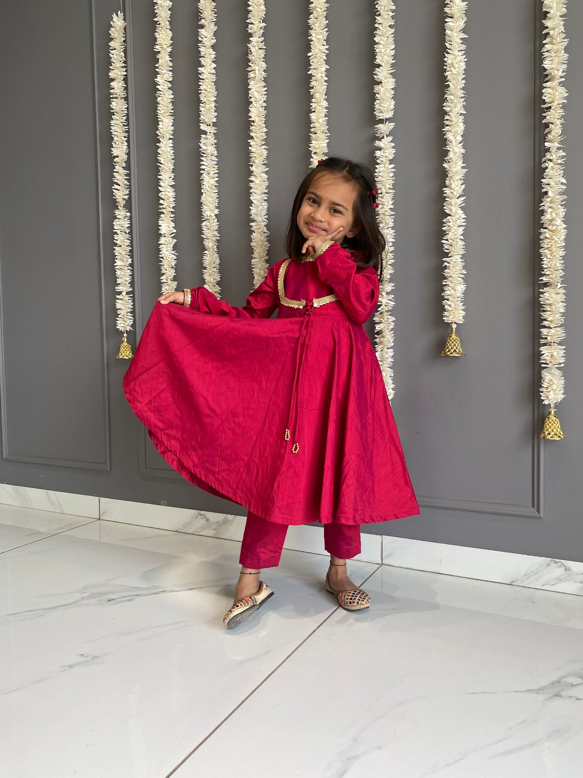 Tomato Red Anarkali Suit Set Kids